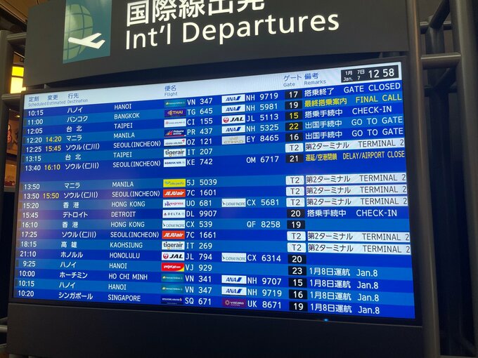 中部空港第1ターミナルでは、午後0時半頃、「ANA・JAL一部の便で搭乗手続きが再開」とのアナウンスがありました。
