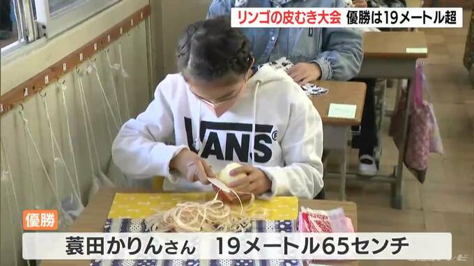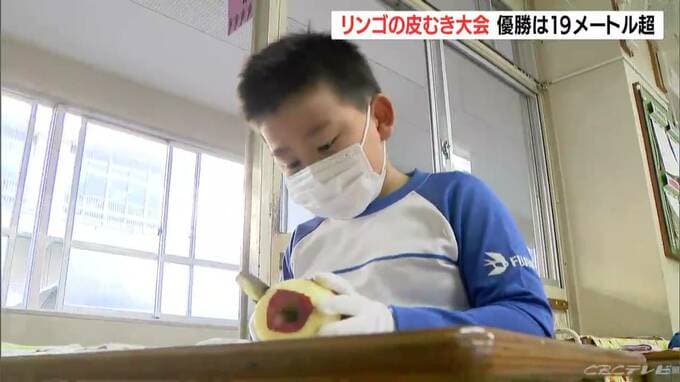 40分でどれだけ長くリンゴの皮をむけるか。豊橋市の富士見小学校では手先の器用さや集中力を身につけてもらおうと1984年の開校以来、毎年この大会を開催しています。