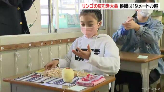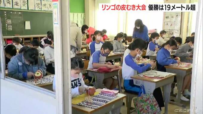 愛知県豊橋市の小学校で毎年恒例のリンゴの皮むき大会が開かれました。