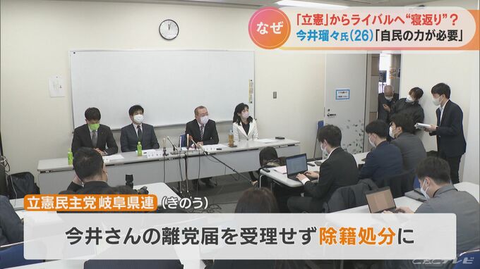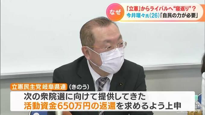 立憲民主党岐阜県連は12日、今井さんの離党届を受理せず、除籍処分とした上で、次の衆院選に向けて提供してきた活動資金、650万円の返還を求めるよう党本部に上申しました。