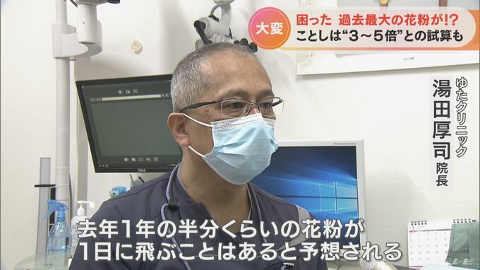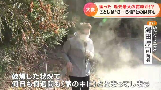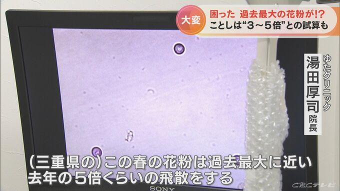 「(三重県の)この春の花粉は過去最大に近い。去年の5倍くらいの飛散をします」