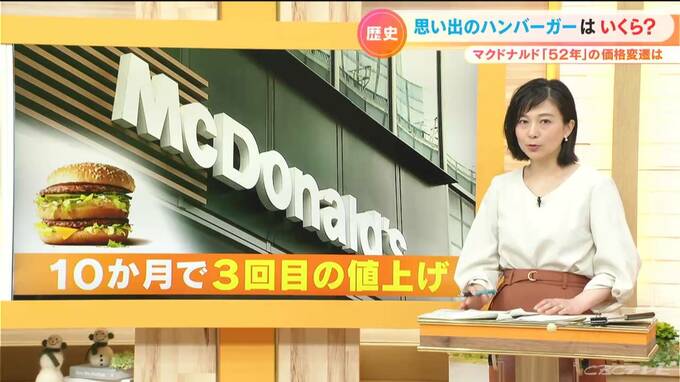 ハンバーガーの値段は、これまで上がったり下がったりを繰り返してきた印象なんですけれど、ここ最近を見ると10ヶ月で3回目の値上げになります。