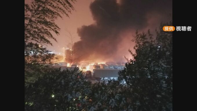 警察によりますとタンクローリーのほか大型トラック2台にも燃え広がり、およそ4時間後に火は消し止められましたが、大型トラックの運転手1人が腕などにやけどをしました。