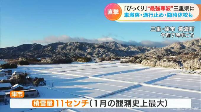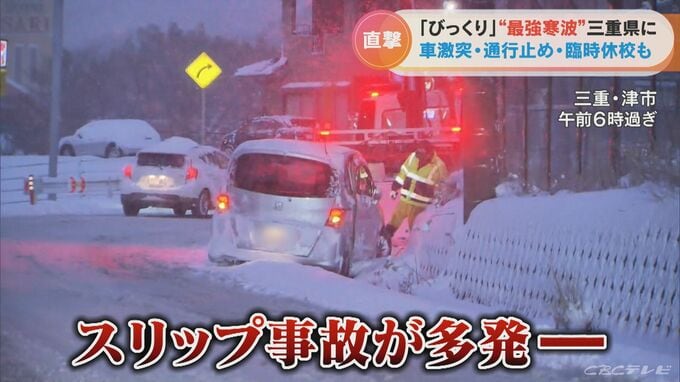 「昨夜から(スリップ事故は)7件目。三重県の人は雪に慣れていないので、できるだけ(車に)乗っていただかない方が安全かと」