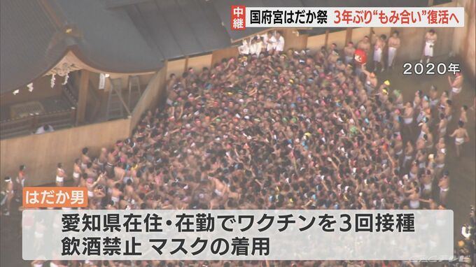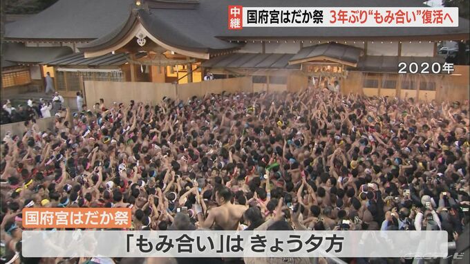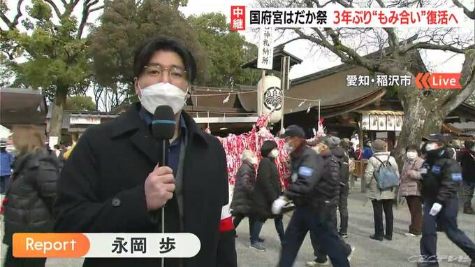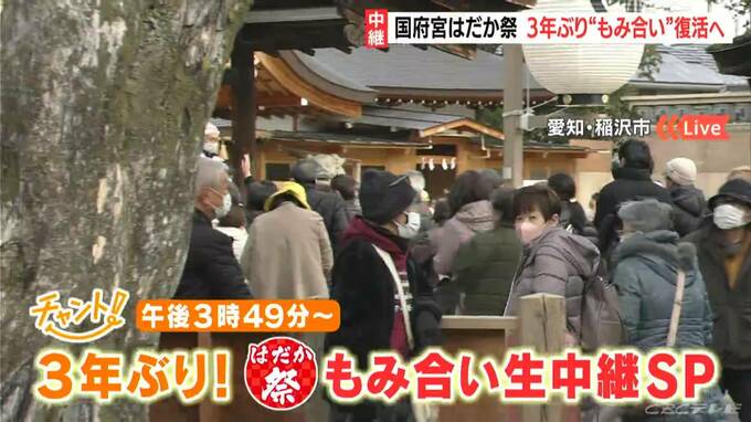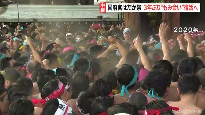「天下の奇祭」と言われる、愛知県稲沢市の国府宮(こうのみや)はだか祭は、3日夕方、3年ぶりにもみ合いが行われます。稲沢市から中継です。