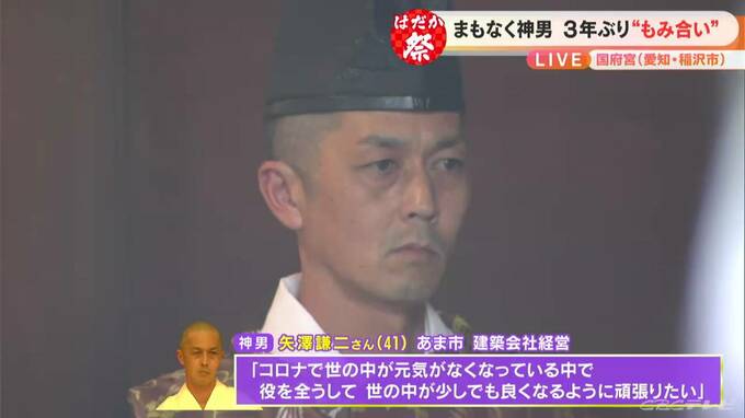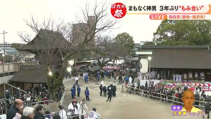 「天下の奇祭(きさい)」と言われる、はだか祭が愛知県稲沢市で始まりました。下帯姿の「はだか男」によるもみあいは3年ぶりです。