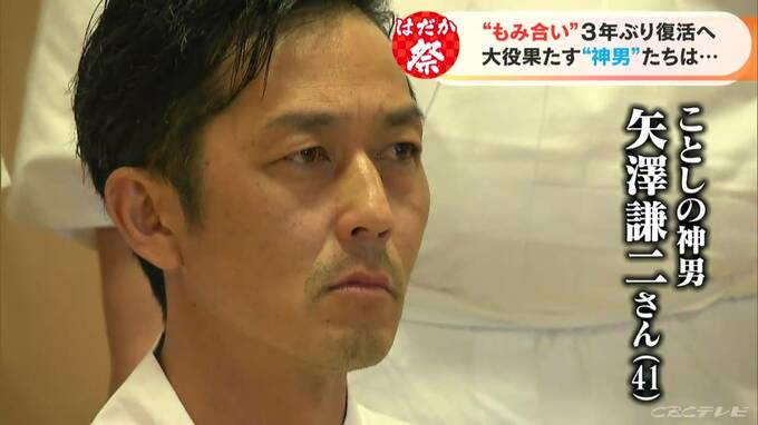 ことしの「神男(しんおとこ)」は、愛知県あま市で建築業を営む、矢澤謙二(やざわけんじ)さん(41)でした。どんな思いで、儺追殿(なおいでん)を目指したのでしょうか。