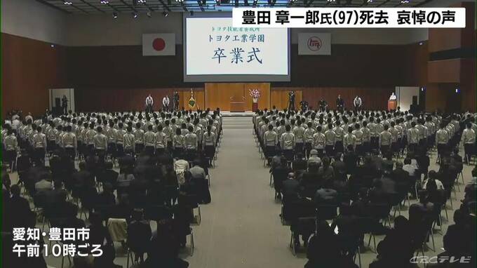 卒業式には、豊田章一郎さんの長男で、トヨタ自動車の豊田章男社長が出席する予定でしたが、訃報を受け、欠席になりました。