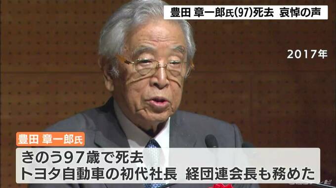 トヨタ自動車名誉会長の豊田章一郎さんが14日97歳で亡くなり、愛知県豊田市でも哀悼の声があがっています。