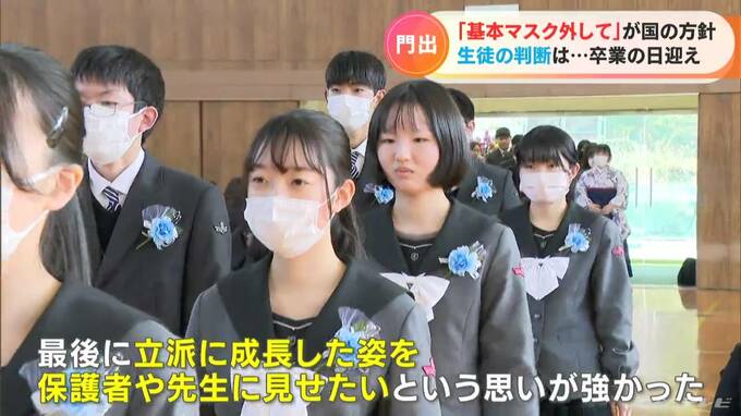 (卒業生)「自分も最後まで外すかどうかとても迷った。最後に立派に成長した姿を保護者や先生に見せたいという思いが強かった。最後はみんなの表情を見て、過ごしてきた思い出とかを思い出しながら、卒業したいと思っていたのでとてもよかった」