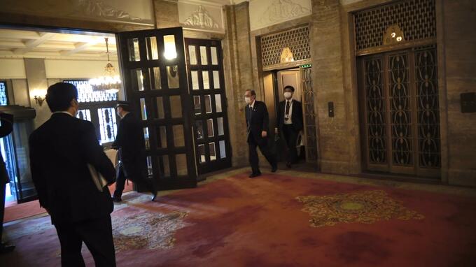国会内では、歩きながらのカメラ撮影は禁止されているが、彼がそのルールを当然に守った上でのことだ。