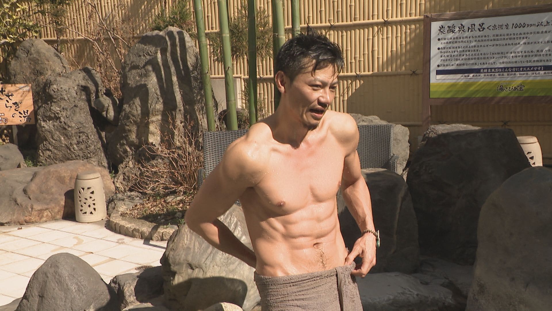 そんな岩永さんと露天風呂に移動し、バキバキの体を披露してもらいました。