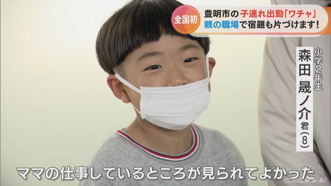 親子が並んで席に着きます。豊明市の学校教育課に勤める森田愛さん。20日、長男で小学2年生の晟ノ介(じょうのすけ)君(8)を連れて出勤しました。