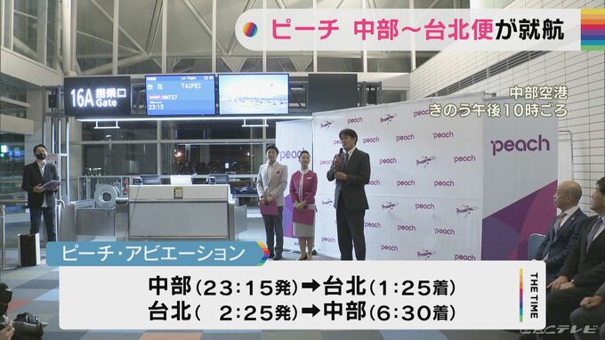 ピーチ・アビエーションの中部・台北便は、中部発が午後11時15分、台北発が午前2時25分で毎日1往復します。