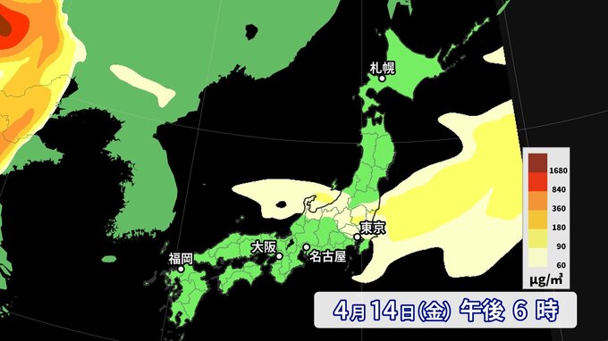 黄砂は14日午後に、いったん薄くなりそうです。