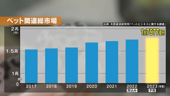 国内のペット関連の市場規模は2017年度以降、右肩上がりで伸び続けており、今年度(2023年度)は1兆7000億円を超える見通し。こうして誰もがペットに癒しを求める中で…