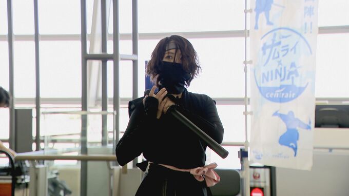 中部空港に「参上」したのは、愛知県の観光PR隊「徳川家康と服部半蔵忍者隊」の、新しい忍者2人。