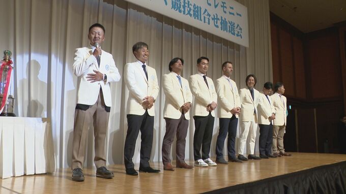 去年、優勝した稲森佑貴選手から王冠トロフィーが返還されたあと、26日行われるプロとアマチュアがチームを組みスコアを競う「プロアマ競技」の組み合わせ抽選会も行われました。