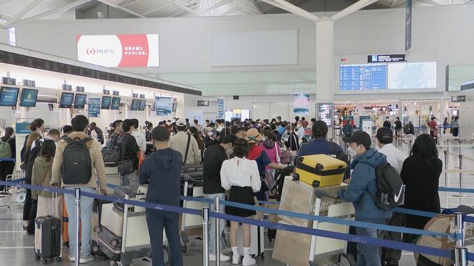 中部空港によりますと、ゴールデンウィーク期間中の出入国者数は、あわせておよそ4万8300人。コロナ禍前の2019年と比べておよそ3割ということですが、去年の同じ時期と比べると、およそ10倍だということです。