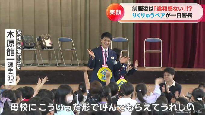 一日署長となった木原選手は、母校の東海市立名和(なわ)小学校を訪問。クイズなどで児童らに防犯や交通安全を呼びかけました。