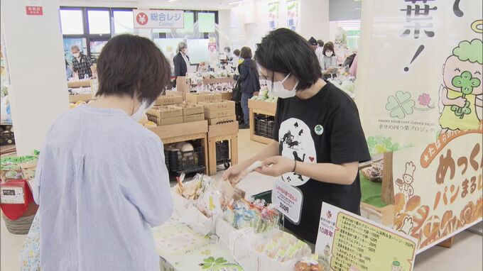 四つ葉のクローバーにちなんだ商品を集めたイベントで大賑わいでした。