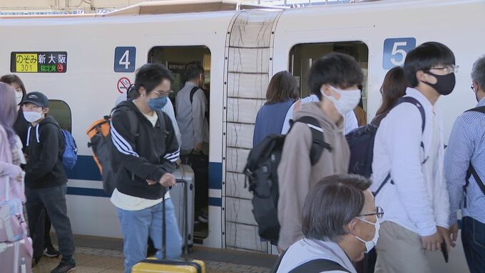 JR東海によりますと、東海道新幹線・下りの自由席の乗車率は最大180%で、席に座れず通路に立つ利用者の姿が目立ちました。