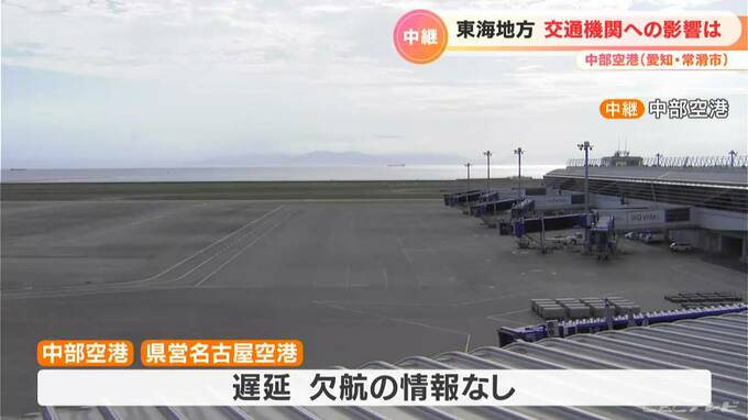 中部空港と県営名古屋空港の発着便で、いまのところ遅れや欠航などの情報はありません。