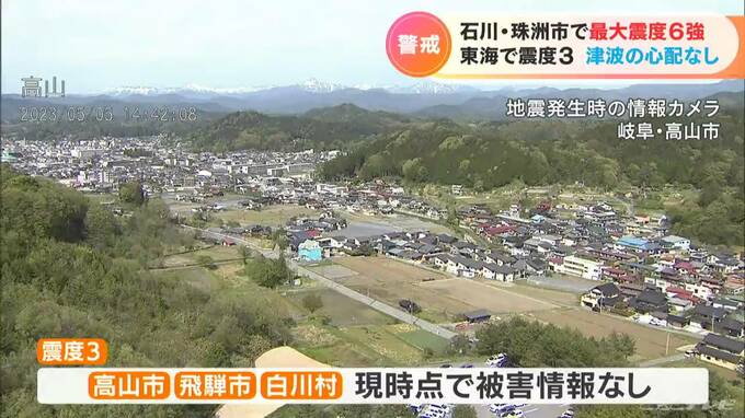 5日午後2時42分頃、石川県能登地方を震源とする最大震度6強を観測する地震がありました。東海三県では岐阜県高山市、飛騨市、白川村で震度3を観測しました。