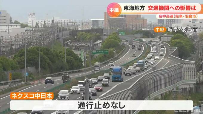 高速道路です。NEXCO中日本によりますと、東海3県でこの地震による通行止めの区間はないということです。