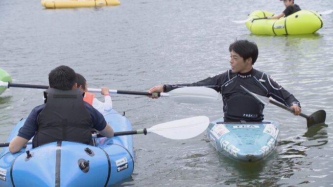 本人が豊田市長に直談判して実現したということで、参加した小学生50人は、パドルさばきを直接教わるなど、トップアスリートとの貴重な交流を楽しんでいました。