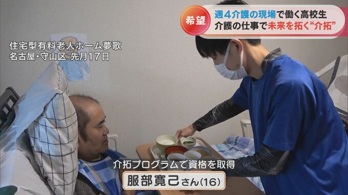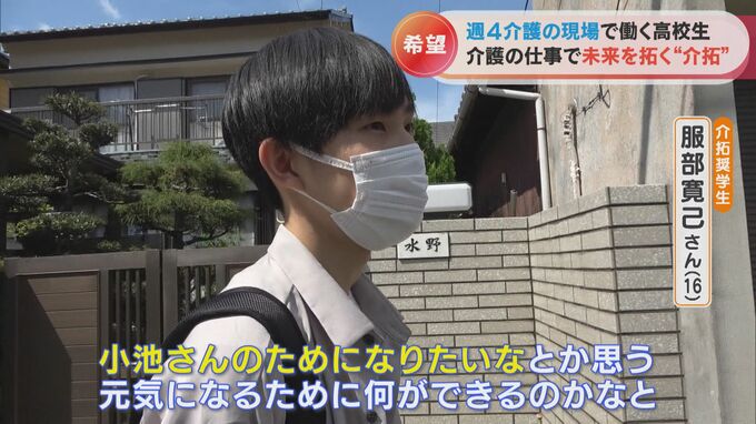 高校2年生の服部寛己さん(16歳)は、週4日2つの介護施設を掛け持ちで働いています。全く縁がなかった介護の世界に関わるきっかけは、2022年に始まった、ある「奨学制度」でした。