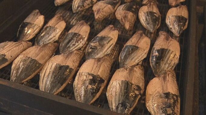 カツオ不漁で苦労も…東紀州のソウルフード“生節づくり”ピーク 1本500円から800円「困っているが価格は据え置き」創業170年の老舗 柔らかい食感の「なまぶし」三重・紀北町 2023年5月12日(金) 12:06 国内 三重県紀北町で、漁師町伝統の保存食、カツオの生節(なまぶし)づくりが最盛期を迎えています。じっくりと燻(いぶ)されるカツオの生節。柔らかい食感が特徴で、三重県東紀州伝統のソウルフードです。創業およそ1…