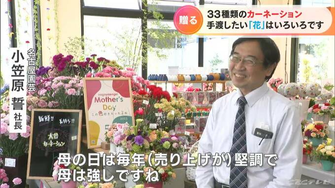 「コロナ禍でお母さんの所へ行けなかったという話をよく聞いたが、(ことしは)直接自分たちでお花を持っていく人が多いのではないか。母の日は毎年(売り上げが)堅調で、母は強しですね」