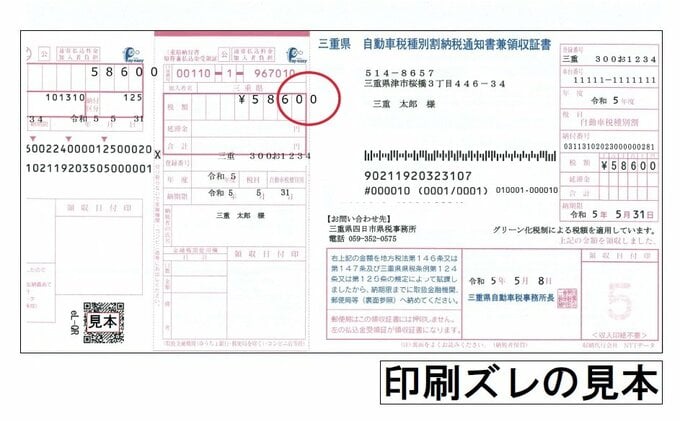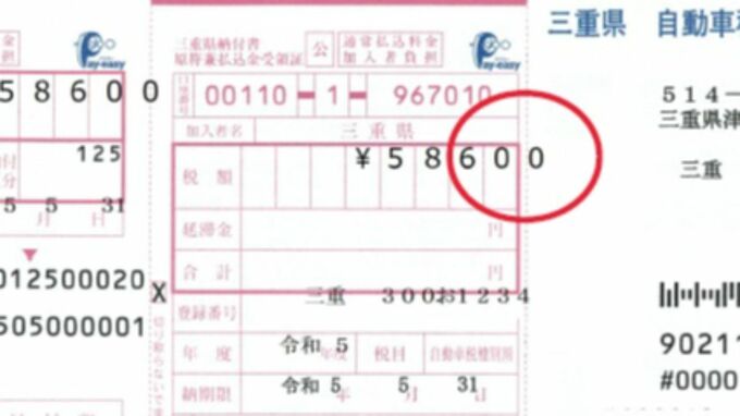 三重県が発送した、令和5年度の自動車税納税通知書の金額部分に一部、印刷のズレが生じ、金融機関で納付ができなかった納税者がいたということです。