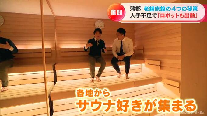 チャント!注目ニュース 老舗の温泉旅館で“ととのう”?本格サウナがオープン 旅行熱高まる中の人手不足 ロボットもやって来た 三谷温泉・平野屋「4つの秘策」愛知・蒲郡市 2023年5月13日(土) 14:30 愛知 チャント! 新型コロナの対策が緩和されて、旅行需要が高まる中、旅館は深刻な人手不足に悩まされています。愛知県蒲郡市の老舗旅館の秘策とは?訪ねたのは、愛知県蒲郡市の三谷温泉にある老舗旅館「平野屋」。Q.ゴ-ルデンウ…