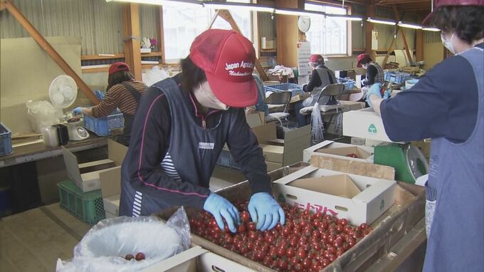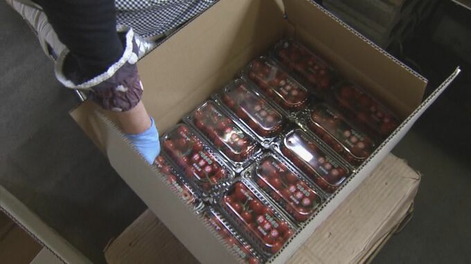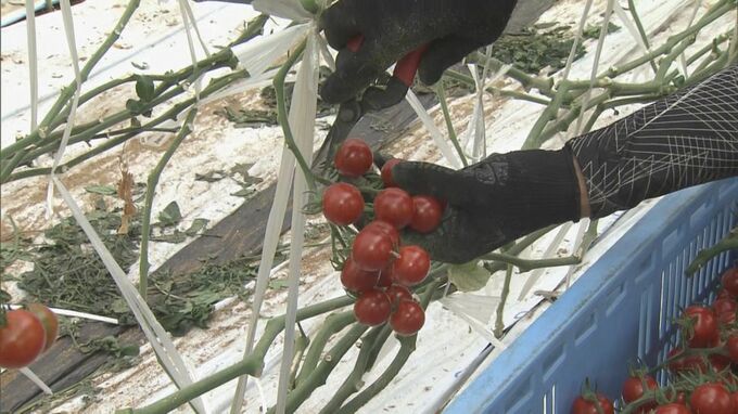 このうち吉良町にある農家のハウスでも朝から収穫が始まり、真っ赤に色づいたミニトマトを、房ごとにハサミで丁寧に切り取っていました。