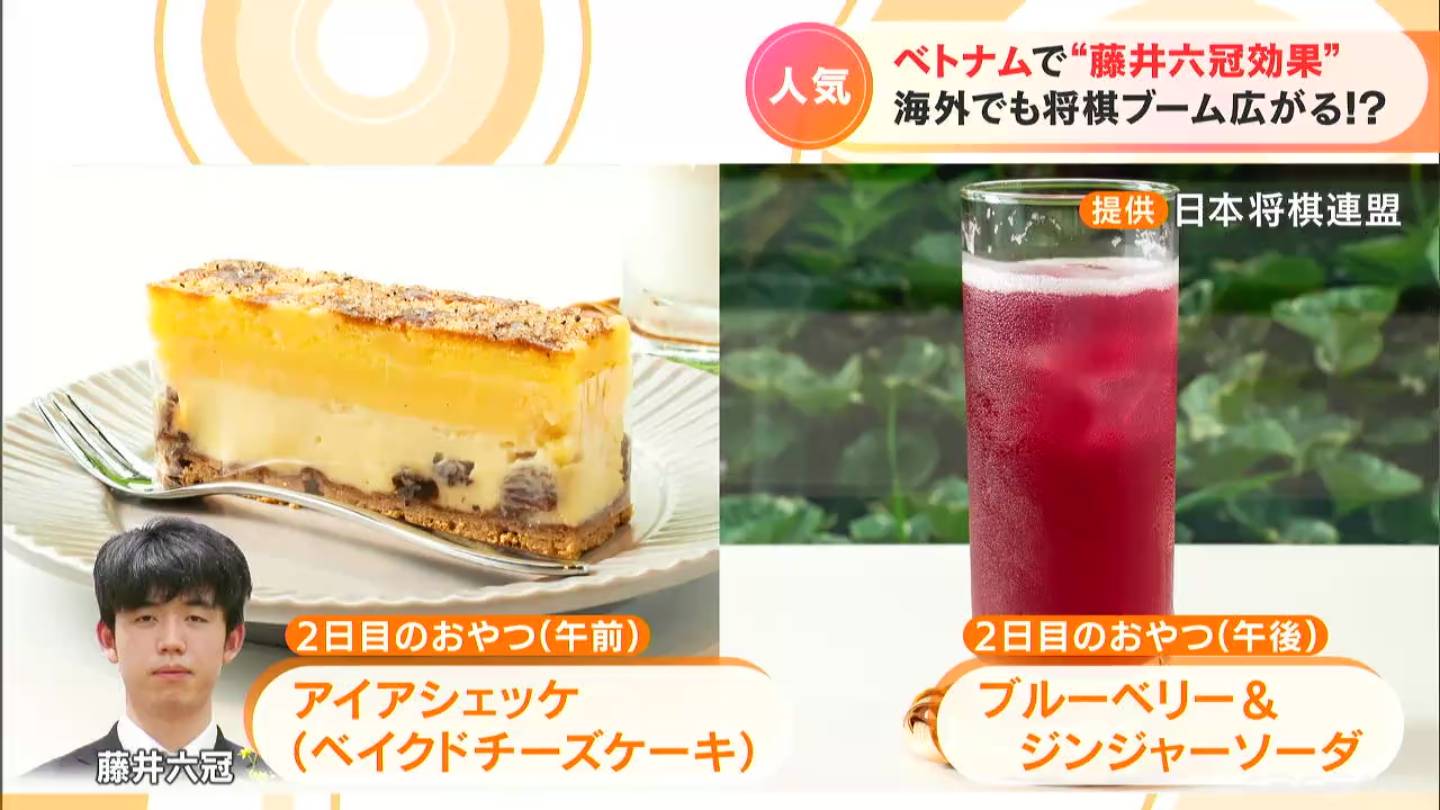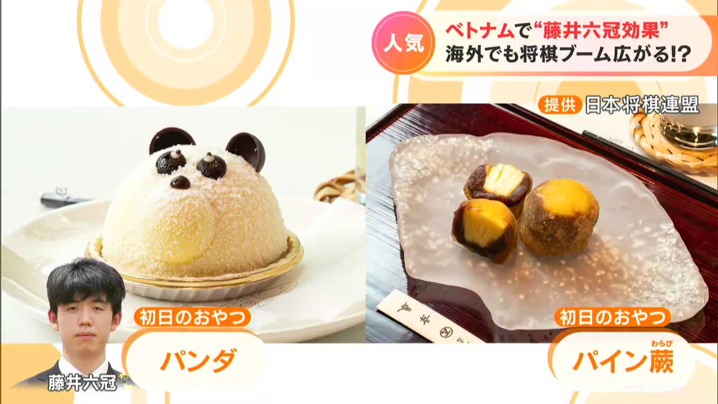 そして初日(13日)のおやつに藤井六冠が選んだのはパンダの可愛い「ホワイトチョコムースのケーキ」とパイナップルが入ったわらび餅「パインわらび」。