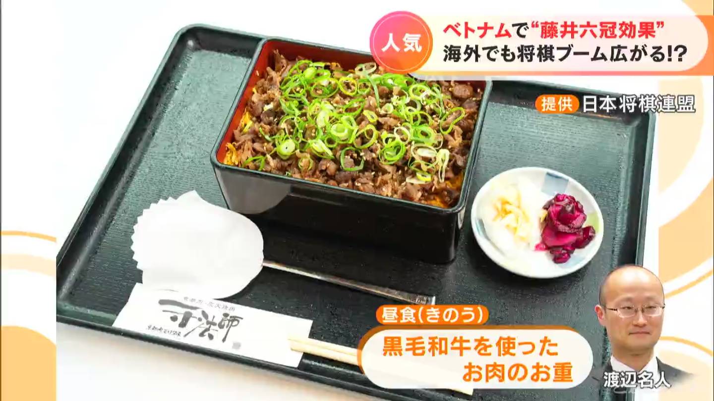一方、渡辺名人の昼食は、厳選した黒毛和牛をたっぷり乗せた丼でした。