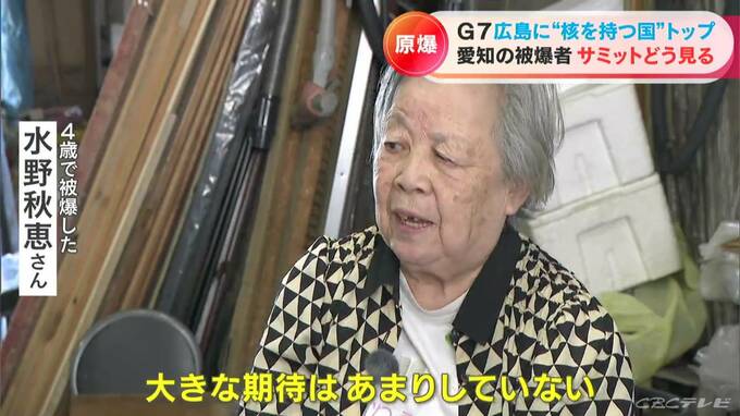 (4歳で被爆した水野秋恵さん)「大きな期待はあまりしていません。G7の中に3か国、原爆もった国があって、(その国に)依存している国がある、日本含めて。そういう中では核廃絶は難しい」