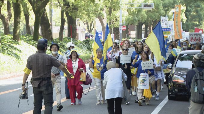 (記者)「名古屋・栄では、ウクライナからの避難民や日本人など約200人が、平和を訴えるデモ行進を行っています」