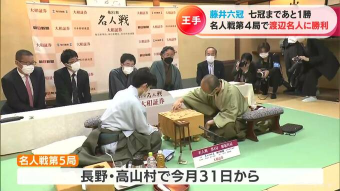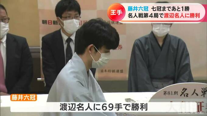 これまでタイトル戦で一度も連敗したことがない藤井六冠は、22日午後4時45分、渡辺名人を69手で下し、第4局に勝利。ついに最年少名人と七冠に王手をかけました。