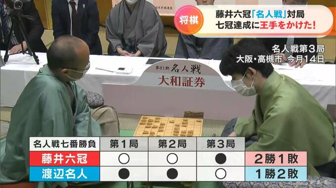 先に4勝でタイトル獲得となる名人戦。藤井六冠は開幕から2連勝したものの、第3局は4連覇を狙う渡辺名人に敗れ、ここまで2勝1敗です。
