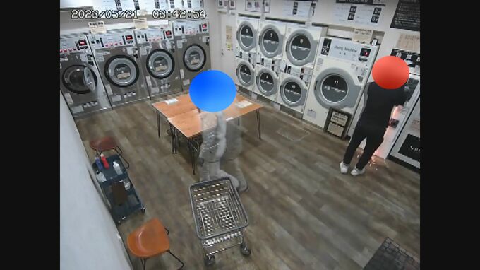 21日午前3時40分ごろ、豊橋市中郷町のコインランドリーにやって来た2人。