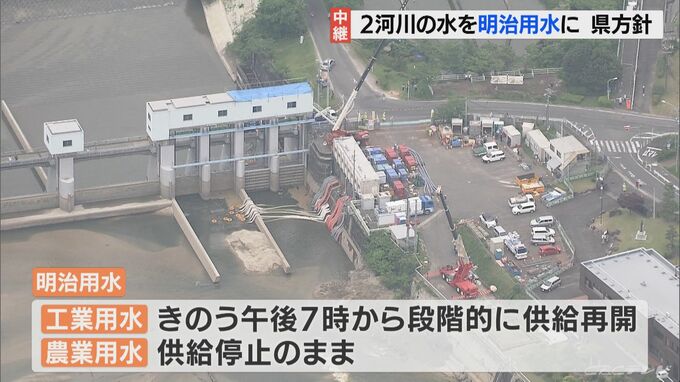 明治用水からの工業用水については、19日午後7時から、段階的に供給が再開されましたが、農業用水は供給が止まったままです。