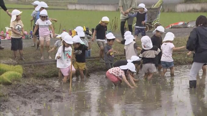 愛知県豊川市で、保育園児が泥だらけになりながら田植え体験を行いました。
