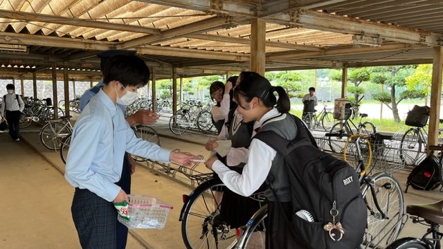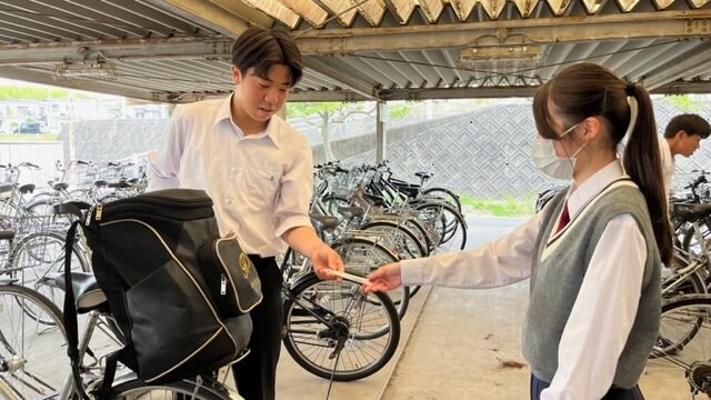 高校生の自転車の盗難が多発していることを受け、愛知県半田市の高校で風紀委員の生徒が駐輪場で自転車に鍵をかけるよう呼びかけました。