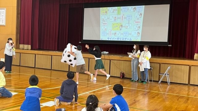 愛知県豊山町で小学生が大学生からゲーム形式でインターネットの危険性などについて学びました。