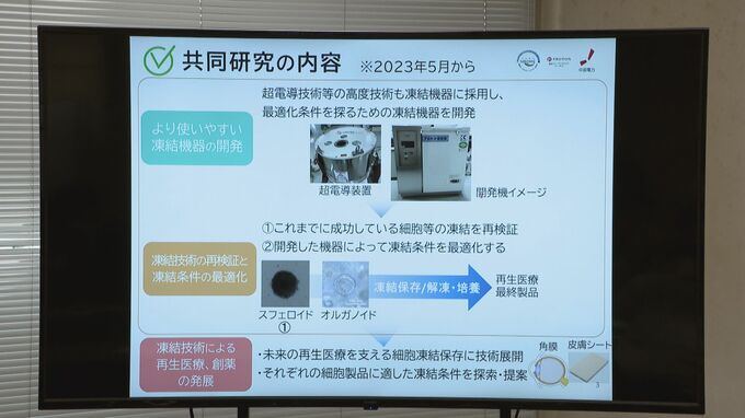 今回の研究は、「中部電力」と国立研究開発法人の「医薬基盤・健康・栄養研究所」それに、食材の急速冷凍機の開発などを行う「菱豊(りょうほう)フリーズシステムズ」の3者による共同研究で、その目的は細胞を生きたまま凍らせ保存する技術の確立です。