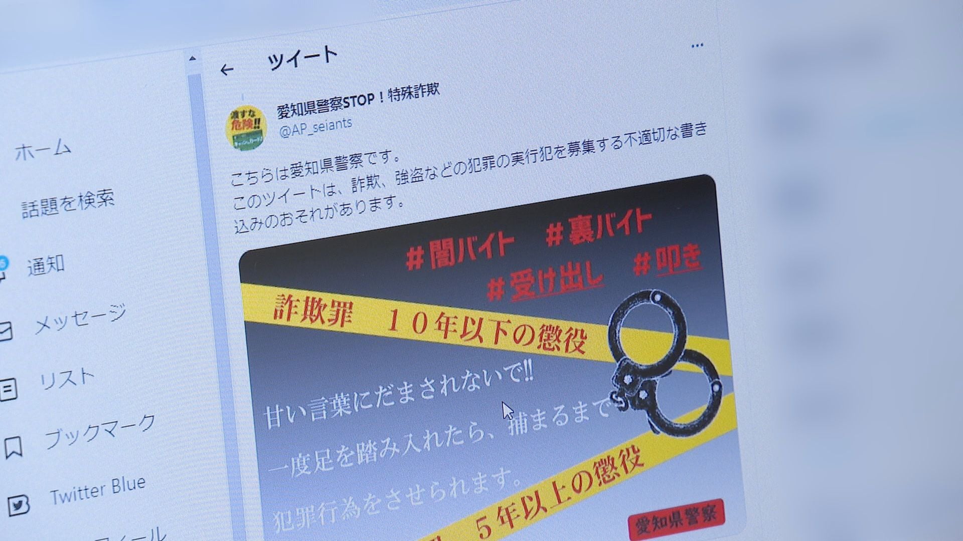 また特殊詐欺の実行犯は、いわゆる「闇バイト」で募集されていることが多いため、警察はこうした募集投稿に対して「甘い言葉にだまされないで!」と警告しています。