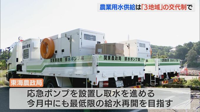 施設を所管する東海農政局は、応急ポンプを設置し取水を進めていて、近日中にも試験的に農地に水を通し、5月中にも最低限必要な給水の再開を目指しています。